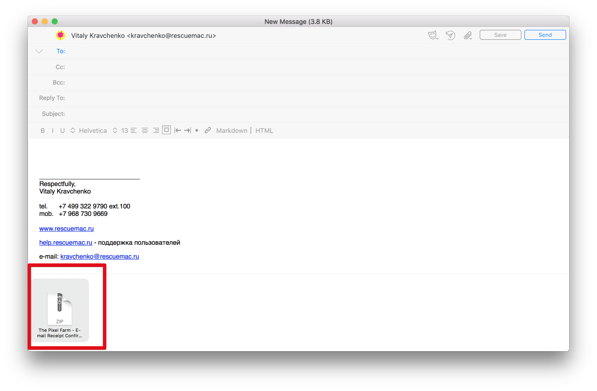 На рабочем столе появится файл, название которого совпадает с темой письма. Щелкните по нему правой кнопкой мыши и выберите пункт Сжать